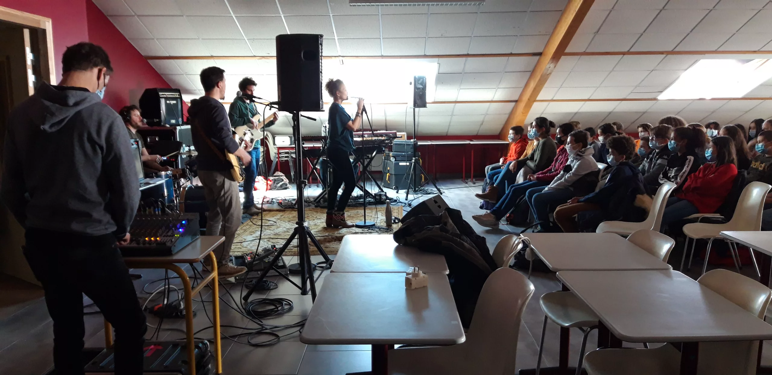 Nous devions accueillir l’ensemble des classes lors de 3 concerts scolaires les 15 et 16 février derniers. Après réflexion sur leurs reports adaptés à la situation sanitaire, Moja partira en tournée… une quoi ?! …si si … une tournée du 22 au 30 mars … au sein des 6 collèges. Aucun ne manque à l’appel ! Ne voyant pas ou peu d’assouplissement avant la fin de la saison et ayant une envie commune de maintenir ces moments, la seule solution était de les proposer in situ ! Le groupe a dû et sû s’adapter (après un an sans concerts). Les équipes pédagogiques des collèges avec MDLA44 ont bousculé les planning d’un q