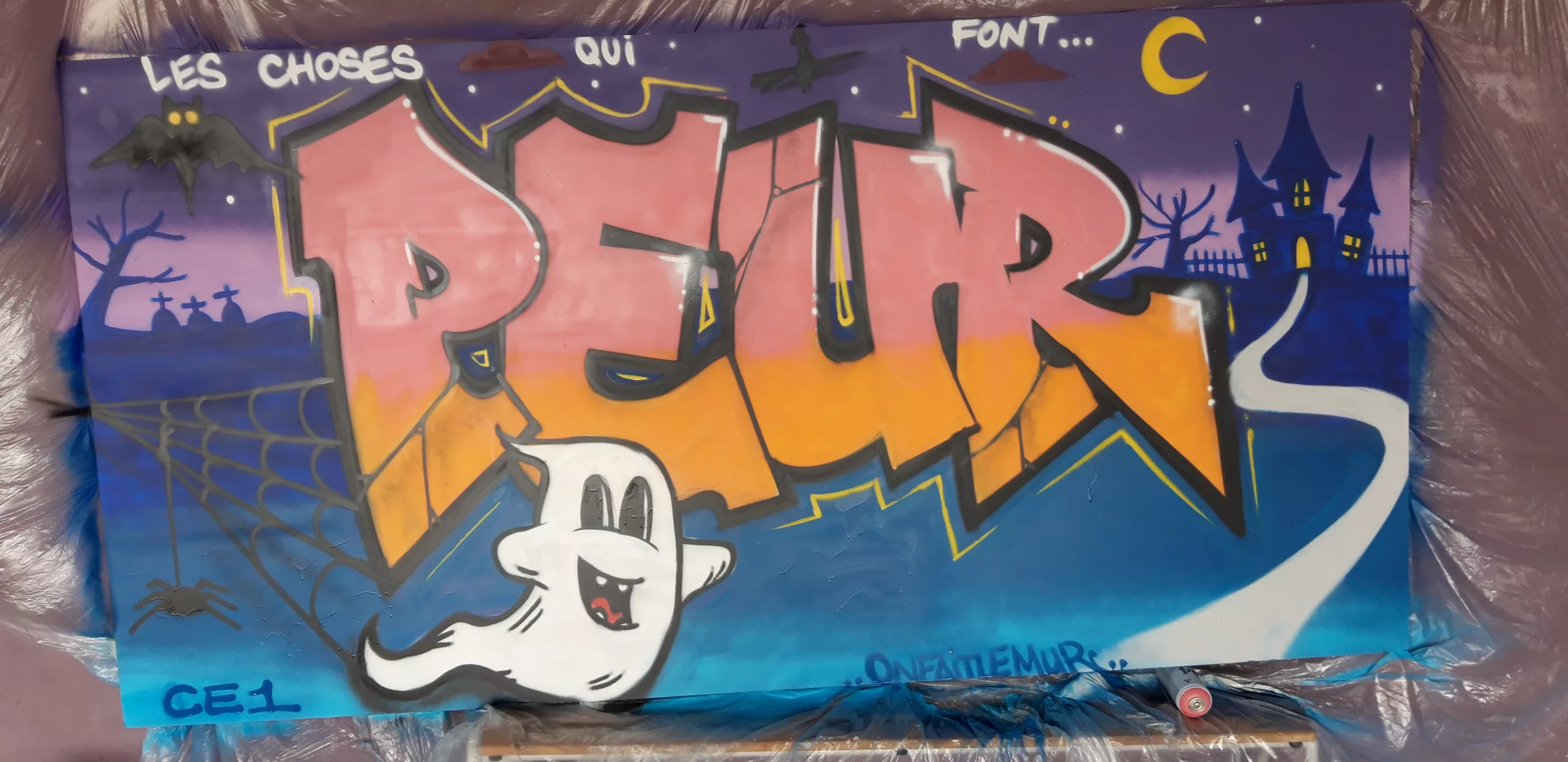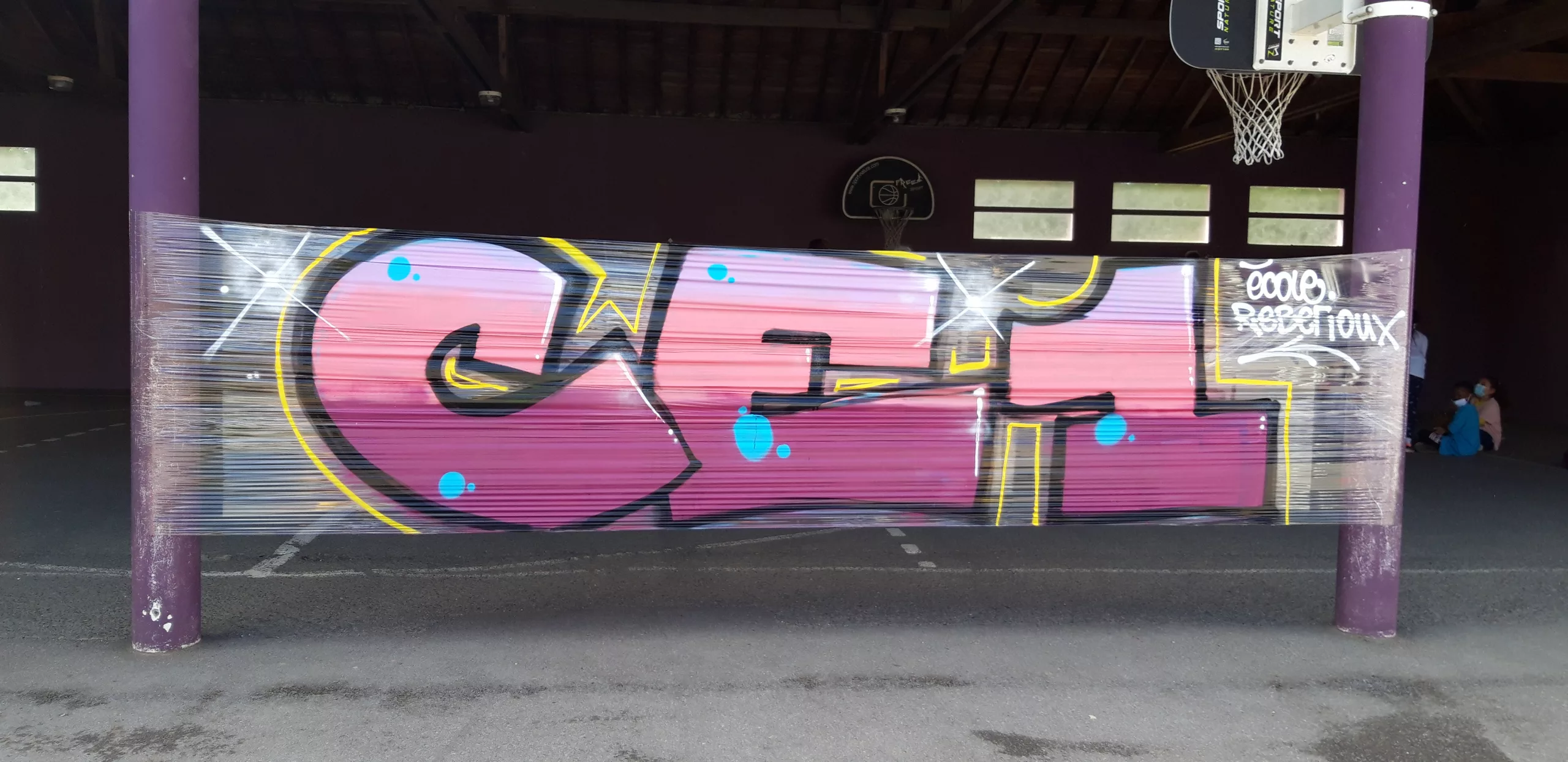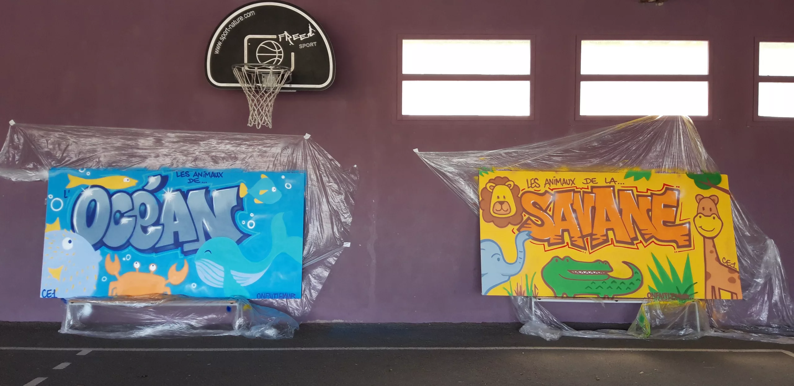 Les 8 graffs ont décoré la cours lors du carnaval de l’école et trouveront place au sein de l’établissement de façon pérenne.