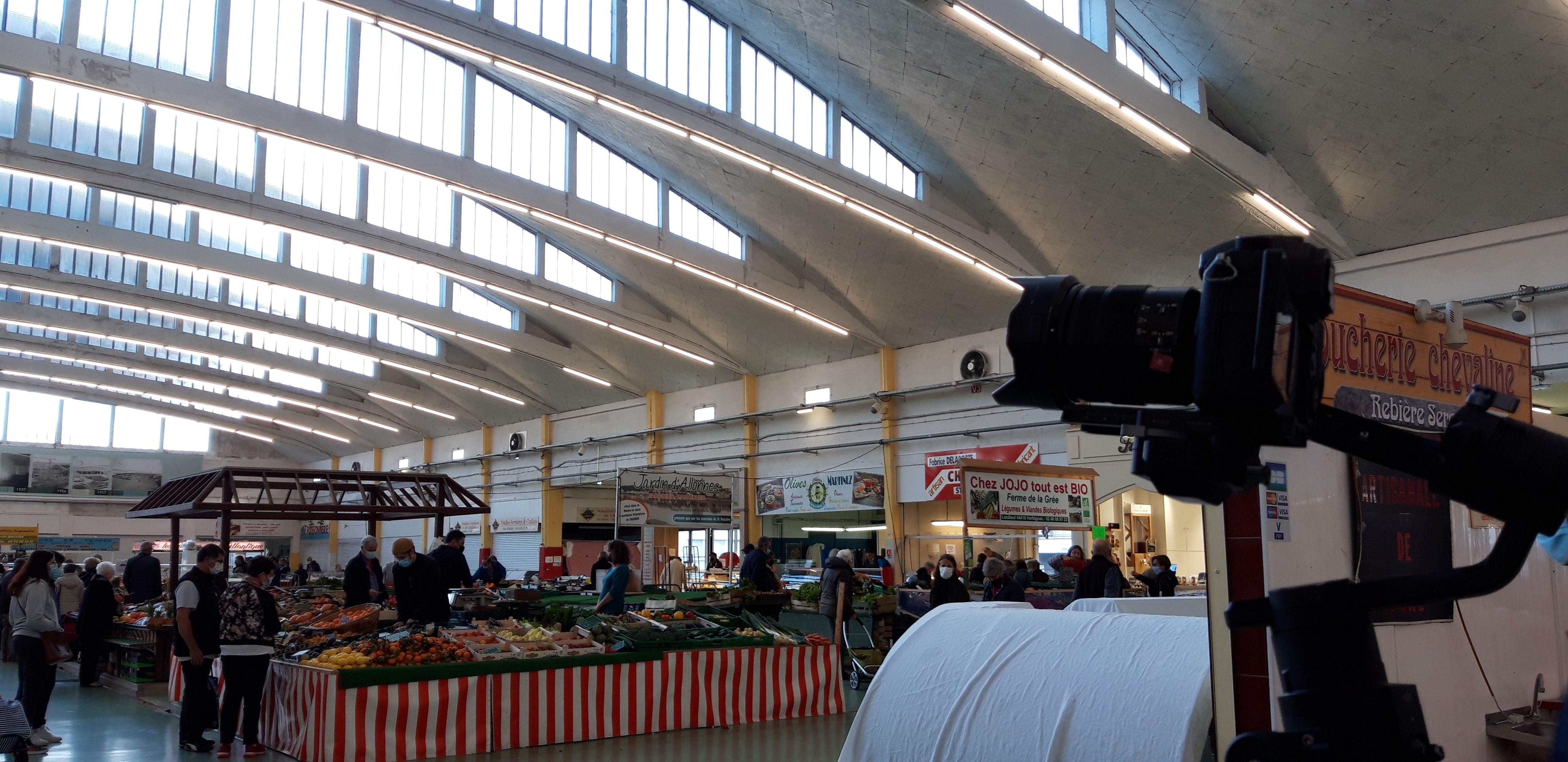 Le groupe, équipé d’enregistreurs et de caméras, est partit à la (re) découverte de 2 lieux, emblématiques de la ville et classés « architecture contemporaine remarquable » : les graphiques Halles une matinée de marché et la surprenante Soucoupe, un jour de rénovation.