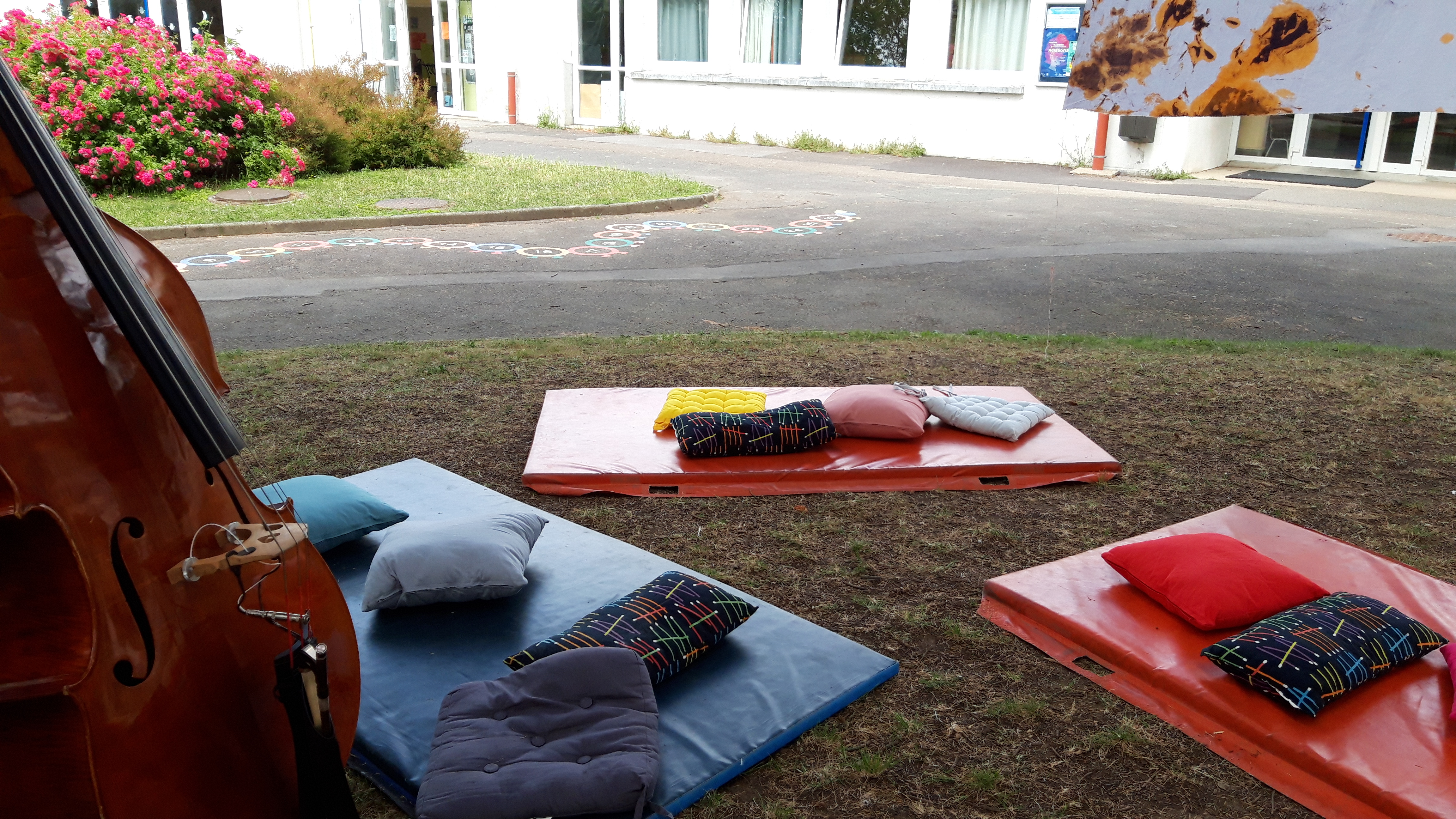 Les accueillir, lors de 2 sessions a permis de varier les formes en classe (avec des ateliers créatifs ou de détente), durant la sieste dans les dortoirs ou en extérieur sous les arbres et les oeuvres réalisées lors d’ateliers menés par le centre d’art contemporain, Le Grand Café.