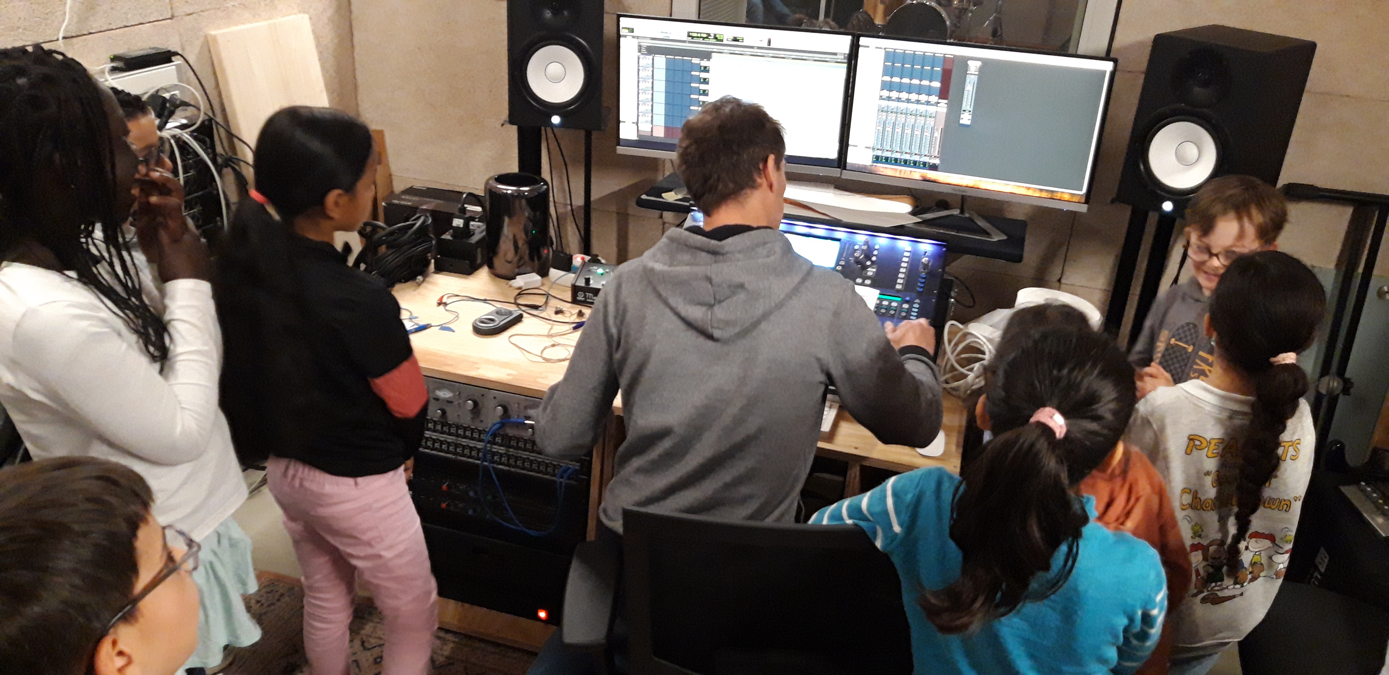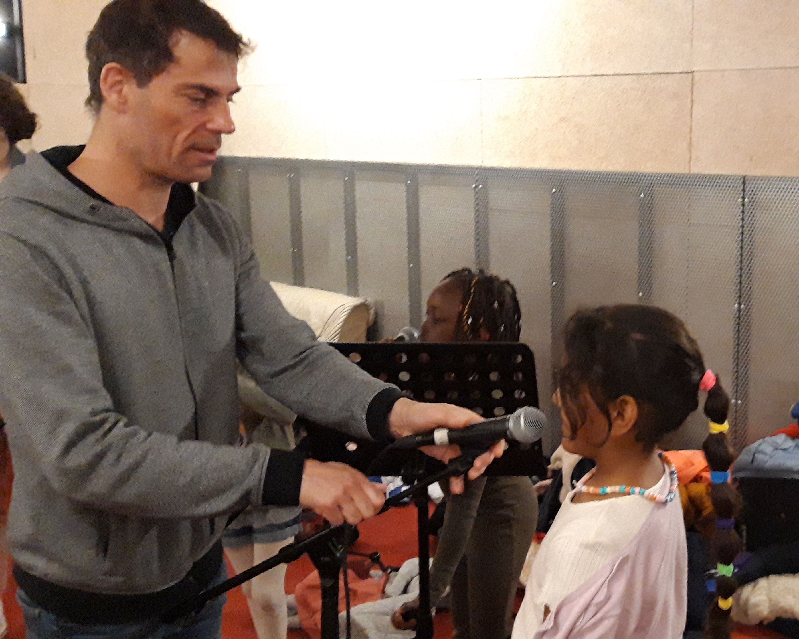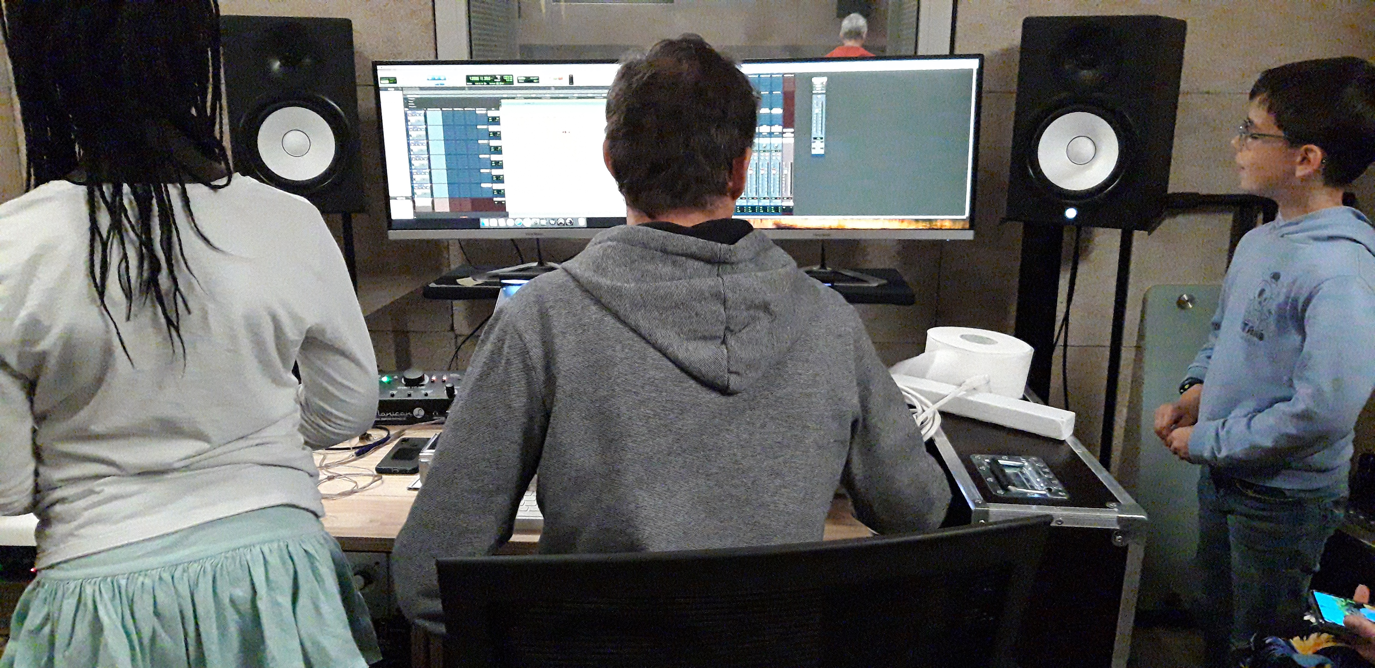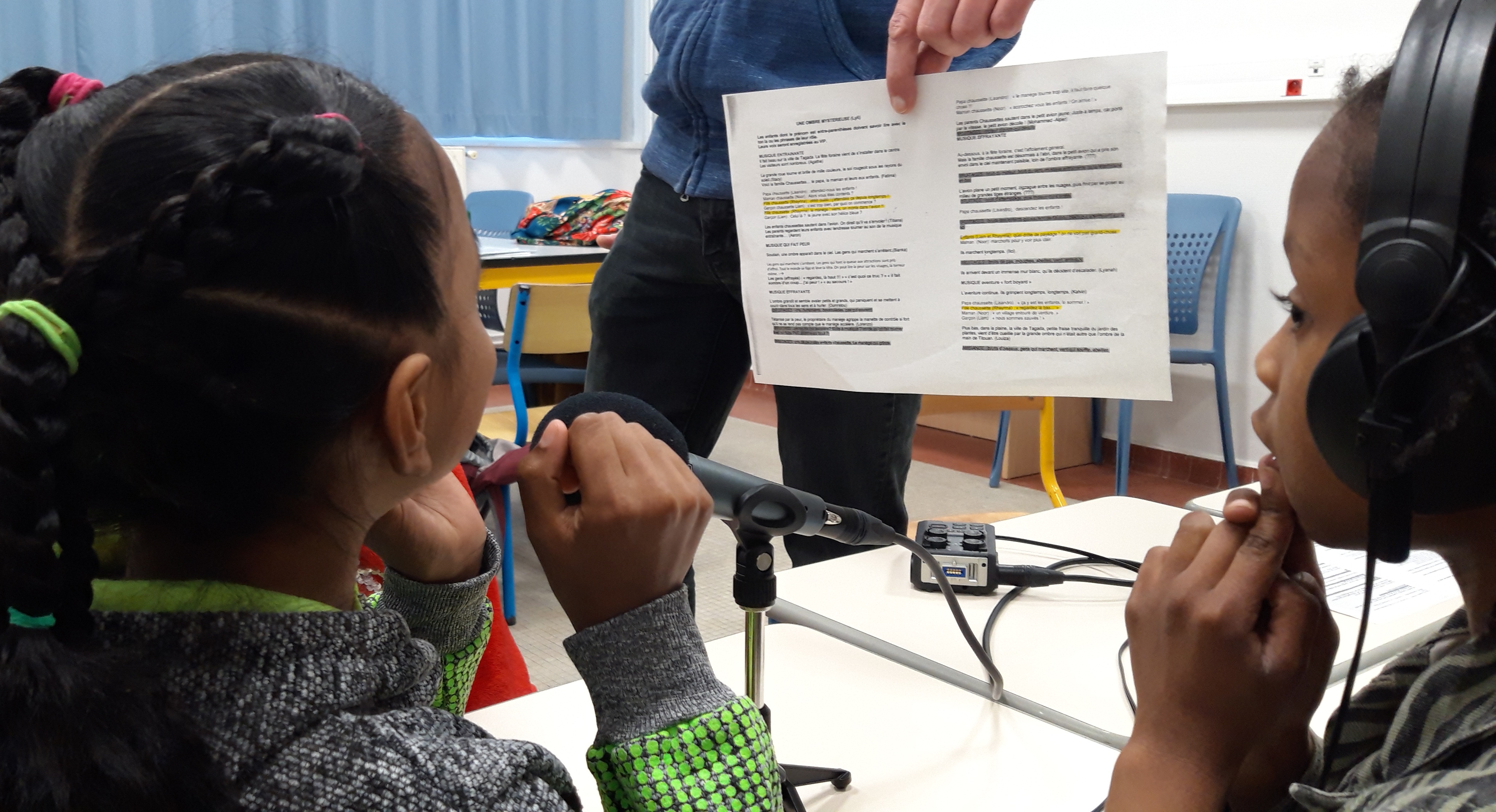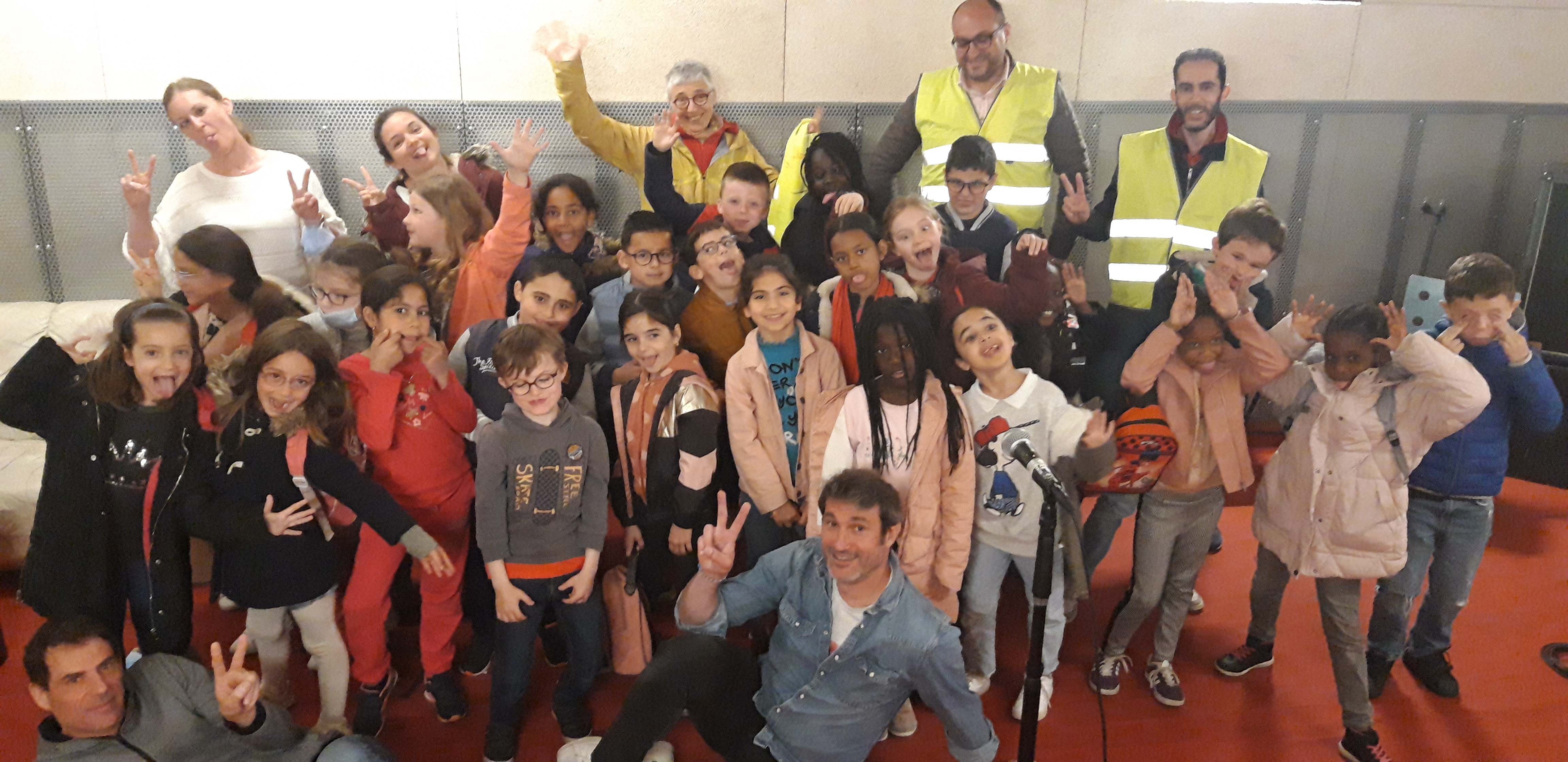 Ce matin, la classe CHAM de l’école Gambetta enregistre avec Florian, animateur aux studios du VIP, la chanson créée pour le projet. Avant l’arrivée des élèves, les enseignant.e.s ont enregistré la partie musicale.