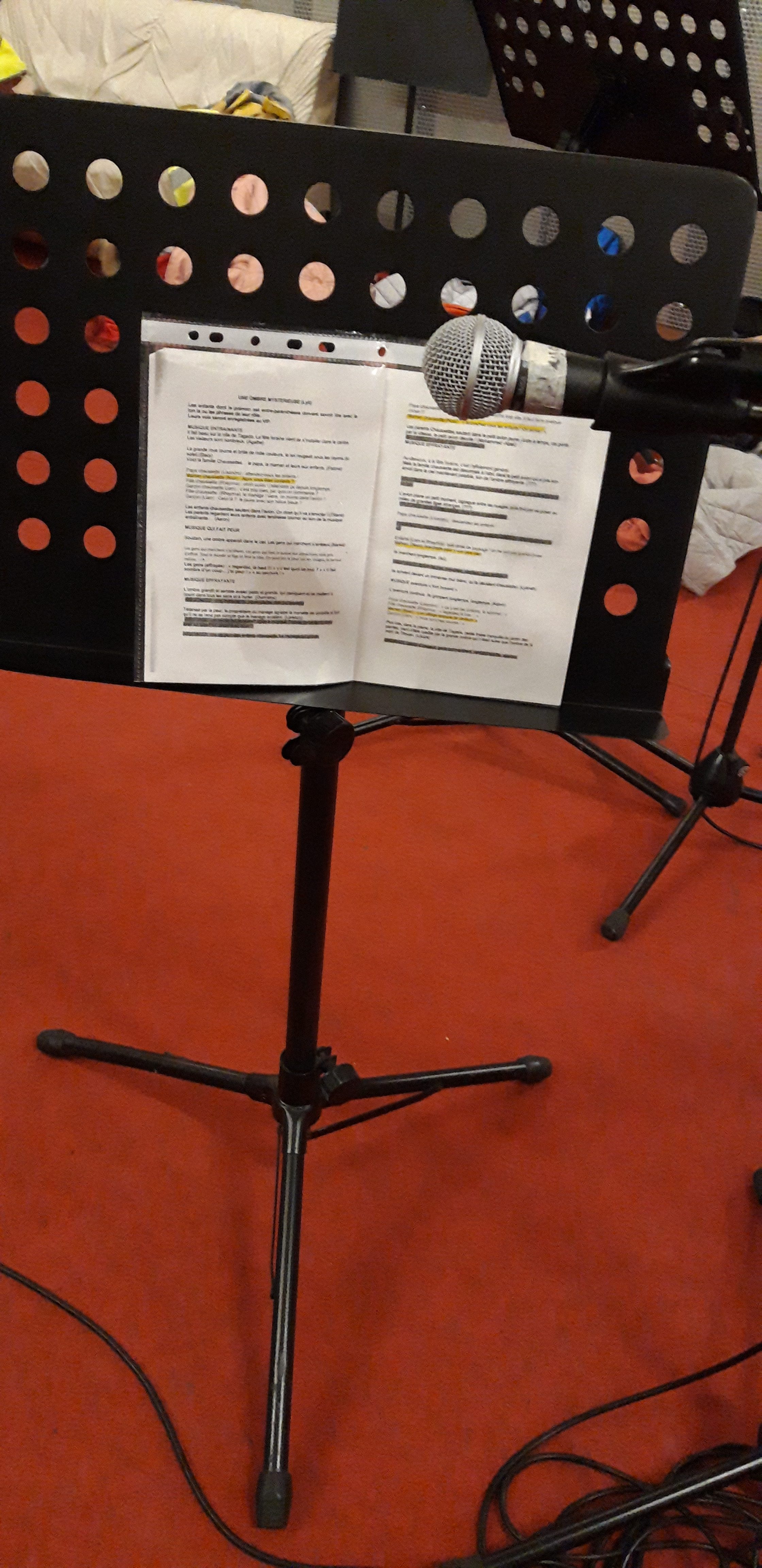 La 1ère séance a débuté par les présentations de Julien Moch, l’intervenant et du projet qui sera réalisé durant l’année scolaire. Julien a expliqué son travail et a questionné les élèves sur les médias et leurs connaissances (radios, télé, différences entre la télé et la radio…) de ces derniers. Ensuite, tests sous forme de jeux : à partir de podcast se représenter le physique des personnes par rapport à leurs voix, à l’inverse regarder une vidéo sans le son et imaginer ce que les personnages racontent, tests de bruitages, écoutes des sons présents dans la salle et tenté d’entendre le silence. Puis à partir du scénario, repérer les phrases « sonores » ou « visuelles » de l’histoire, imaginer comment retranscrire l’histoire en 4 sous catégories : récit, bruitage, musique, personnage. Pour finir, Julien leur a expliquer l’enregistrement, le fonctionnement du zoom (enregistreur) et l’import de la matière collectée dans l’ordinateur.
