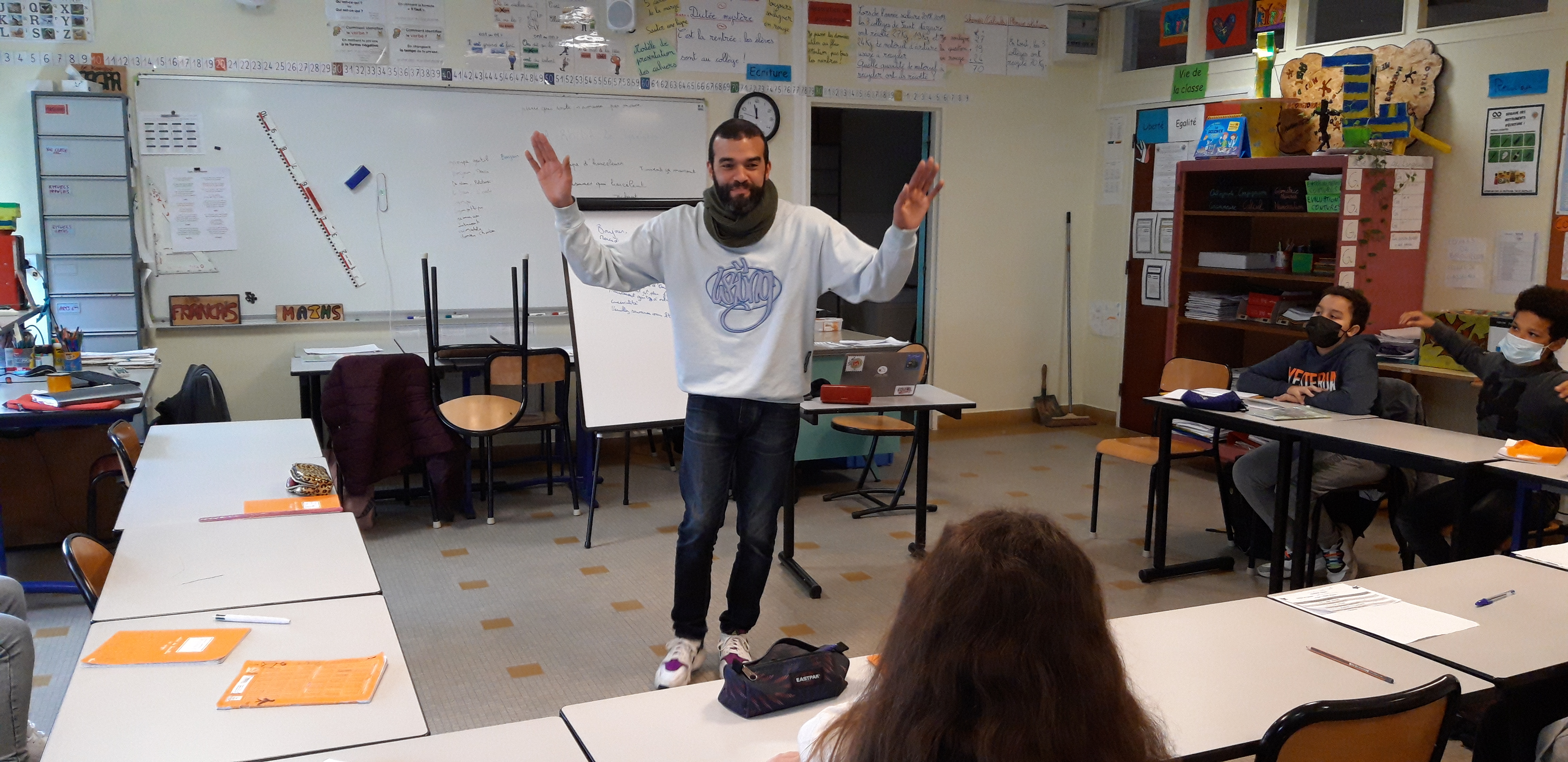 Le rappeur et danseur Rhida a mené un atelier d’écriture et d’interprétation aussi auprès de la Classe ULIS.