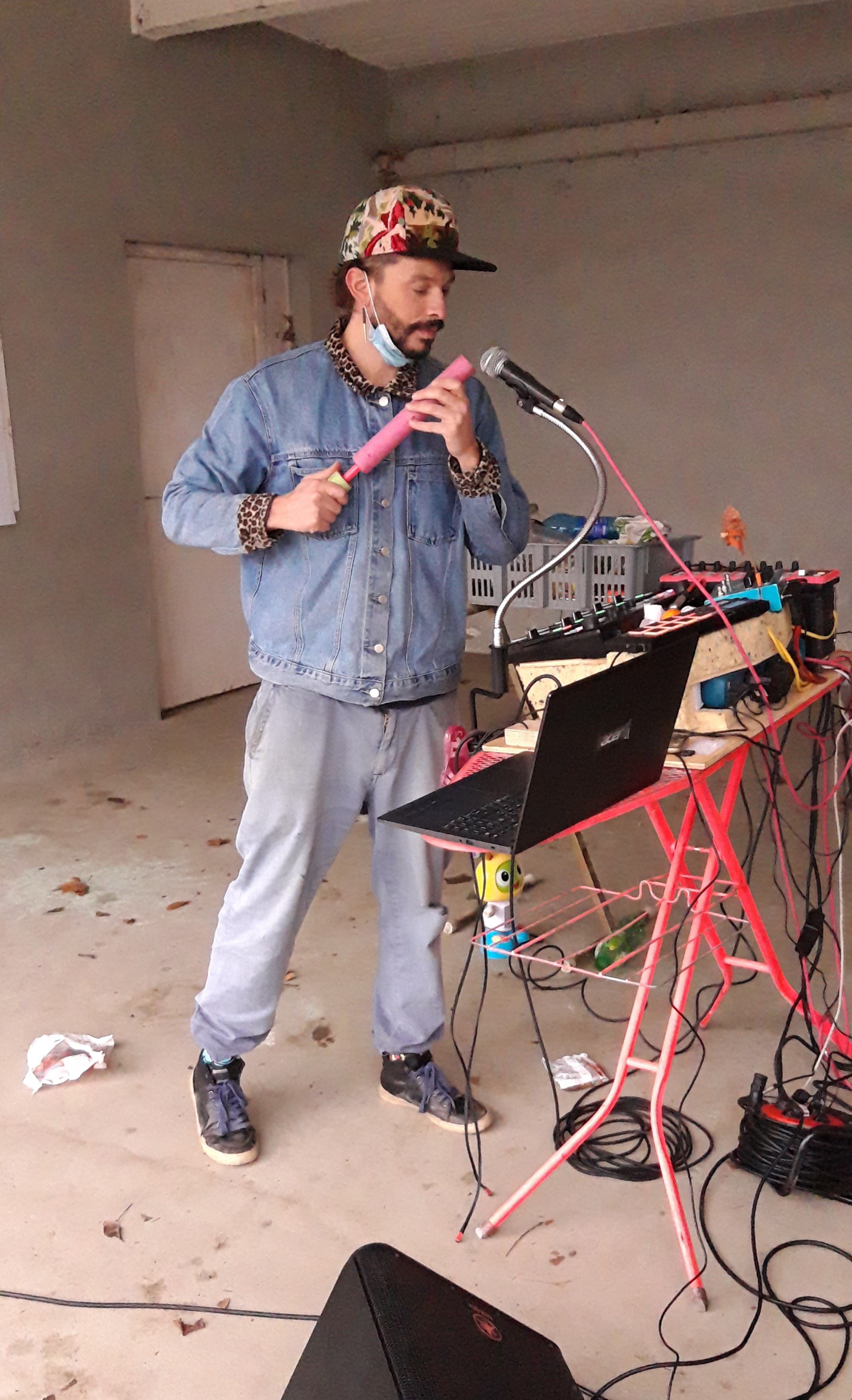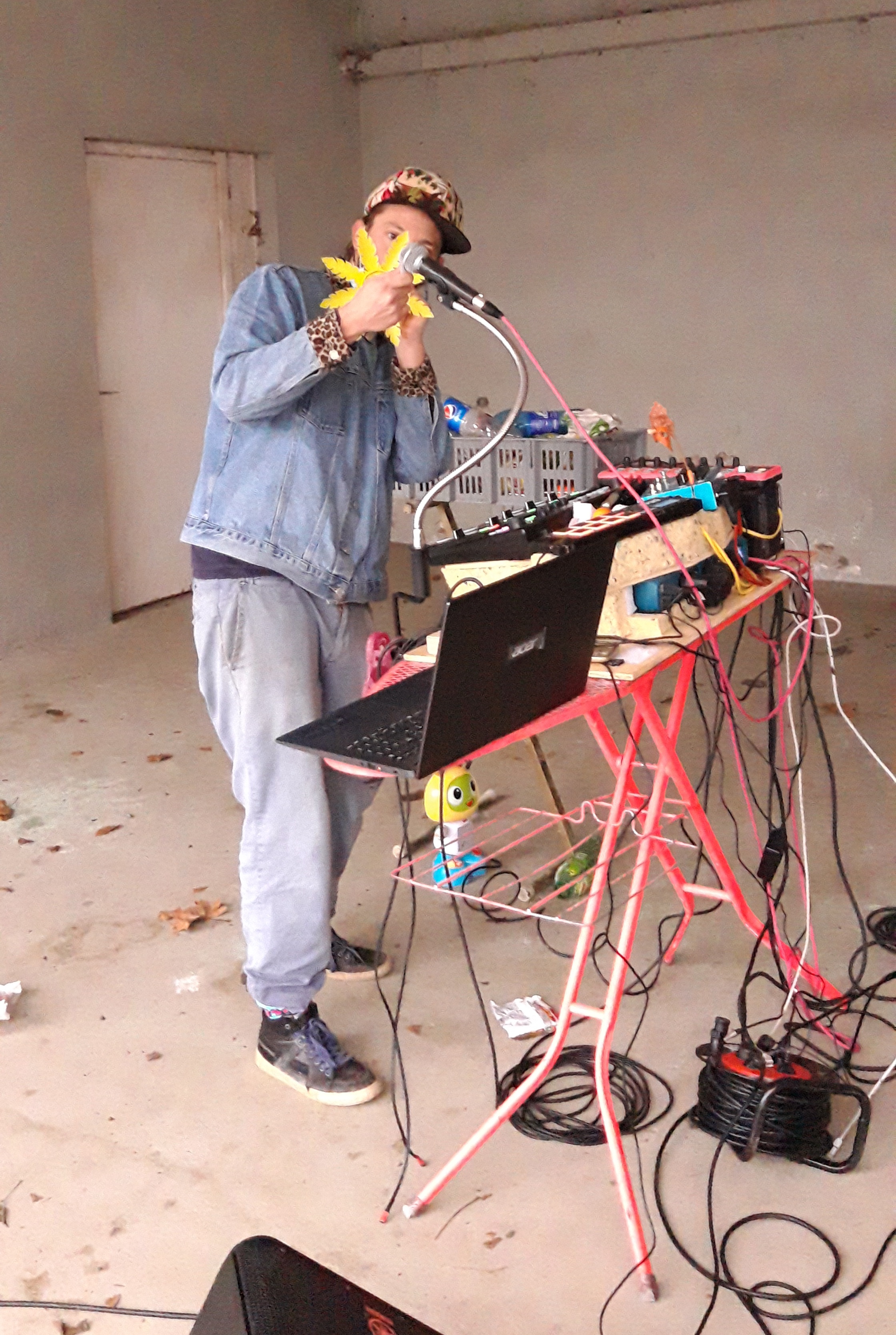« Lechapus, orchestre plastique!” exorcise en chansons notre gabegie plastique, fabrique de la musique électronique avec des déchets plastiques, il fait chanter les produits vaisselles, swinguer les sachets d’emmental et les opercules de soda américain… Lechapus en live, ça donne ça!