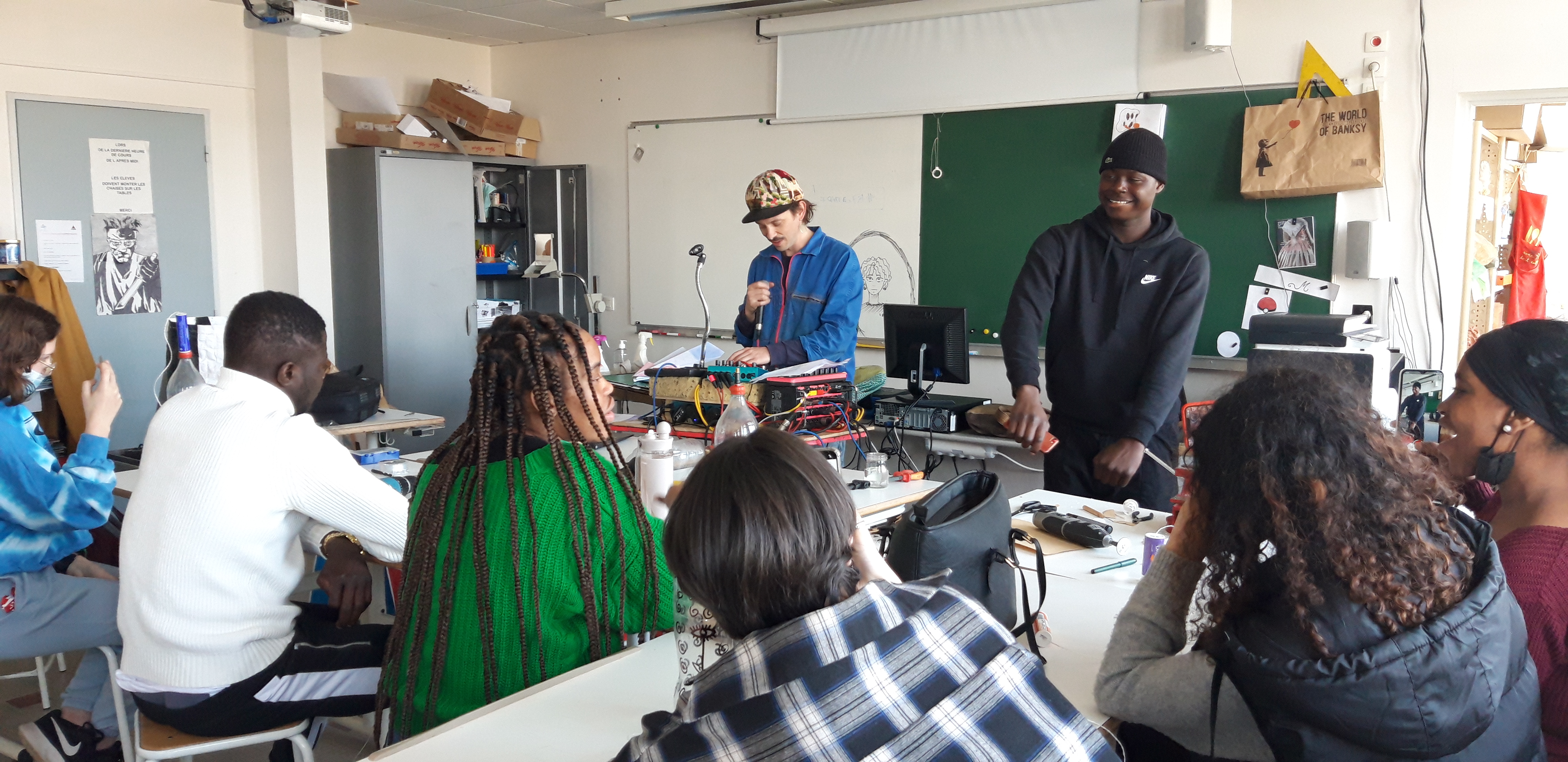 Les classes ont participé à une grande cleanwalk sur le front de mer qui avait pour arrivée la découverte de l’univers de Ben et la création d’un morceau avec les déchets au VIP. En classe et à partir de la récolte et de précédents glanages, les lycéen.nes ont participé à des ateliers de créations d’instruments de musique et boucles d’oreille en déchets plastiques.