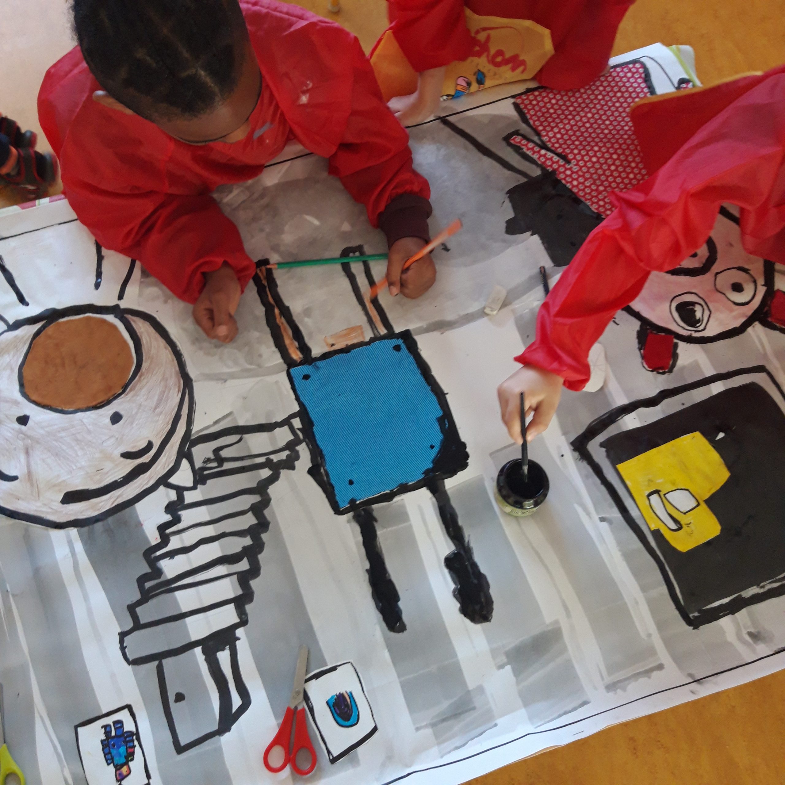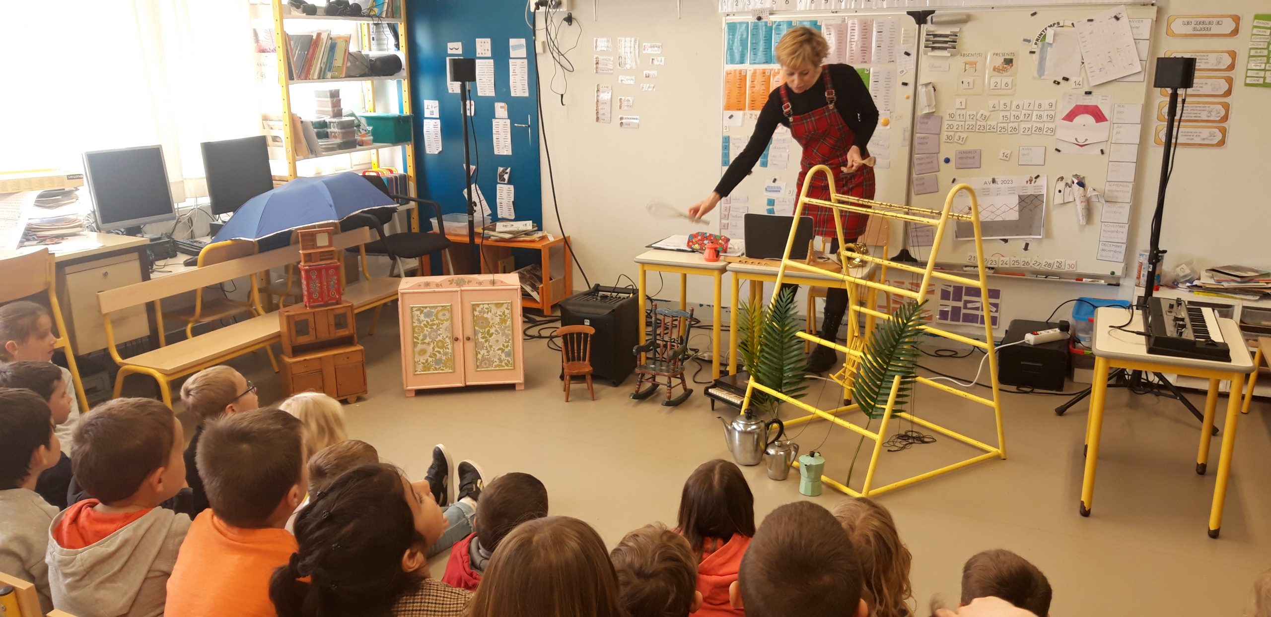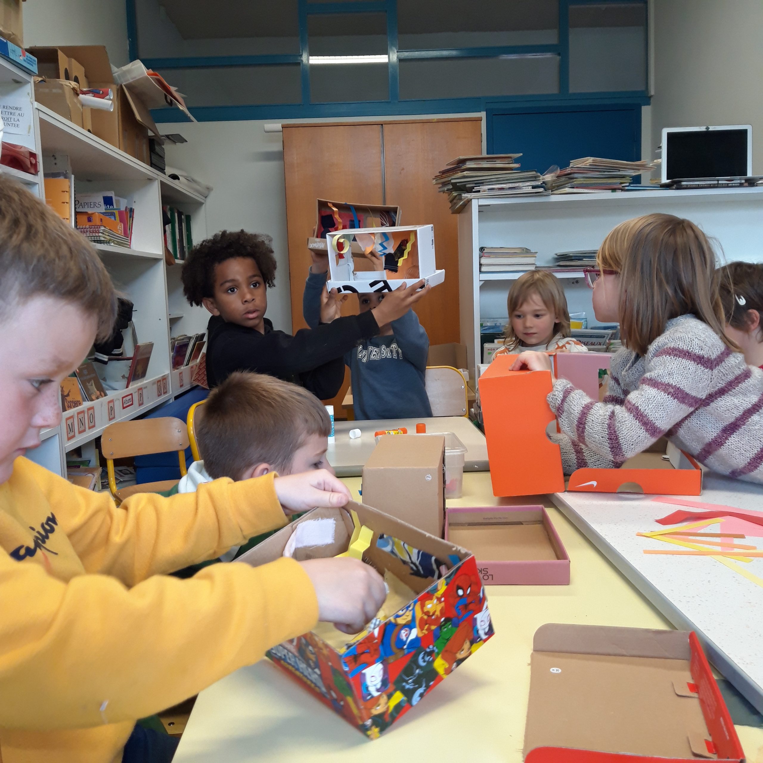 Les 5 et 16 mai, ateliers avec la Cie des petits spectateurs et compagnie auprès des 4 classes, retour sur le spectacle, personnalisation d’objets (yeux) et création d’histoires lors de la rencontre de ces objets lors du 1 er temps.