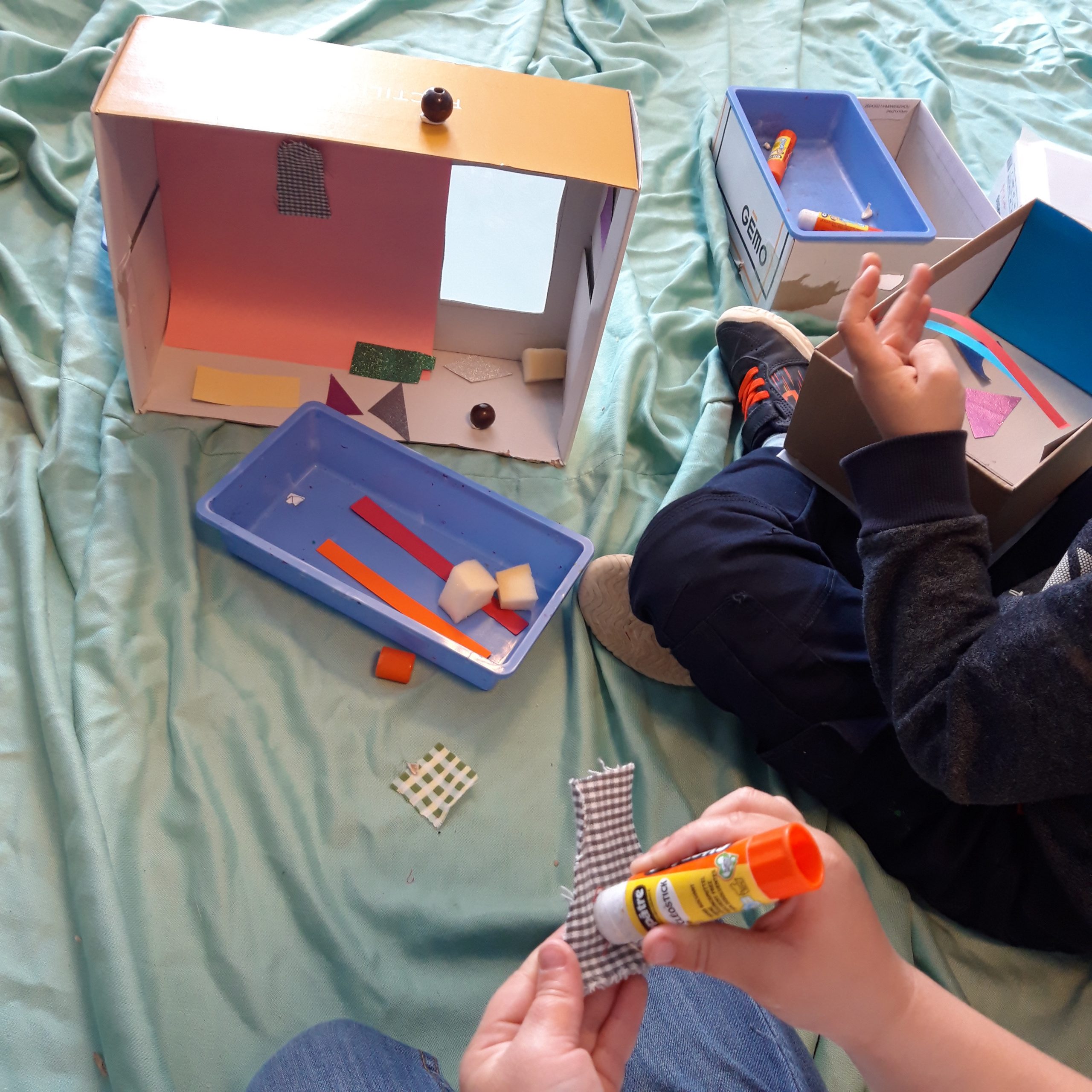 2ème atelier, création d’un décor à la manière de Hablame Cosita pour refaire du théâtre d’objet et imaginer de nouvelles histoires à la maison.