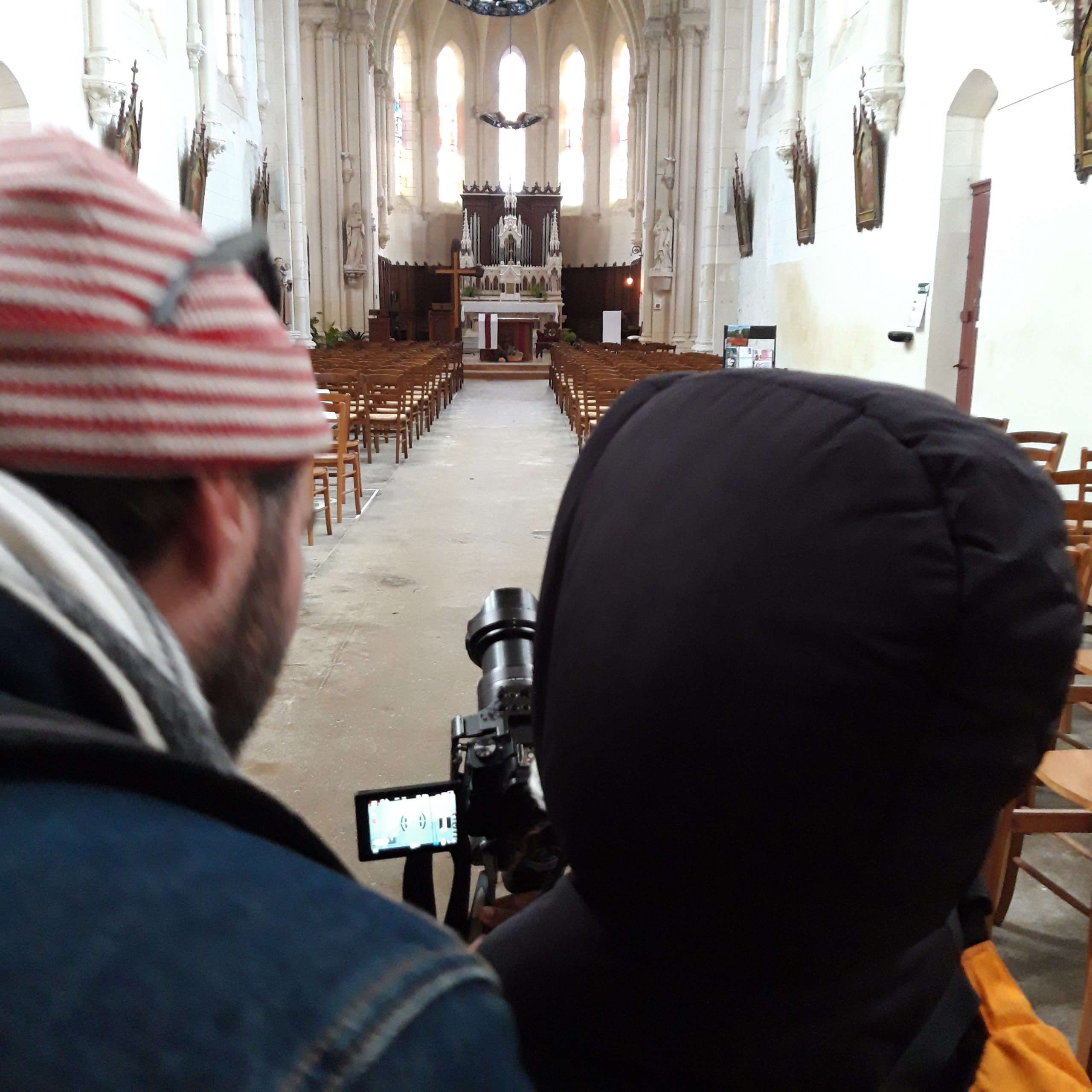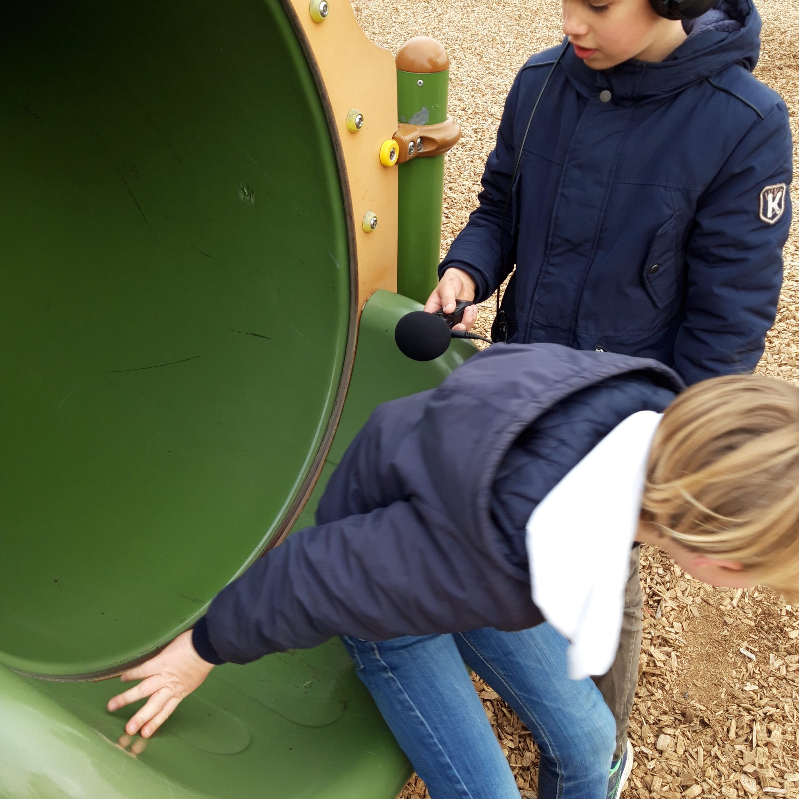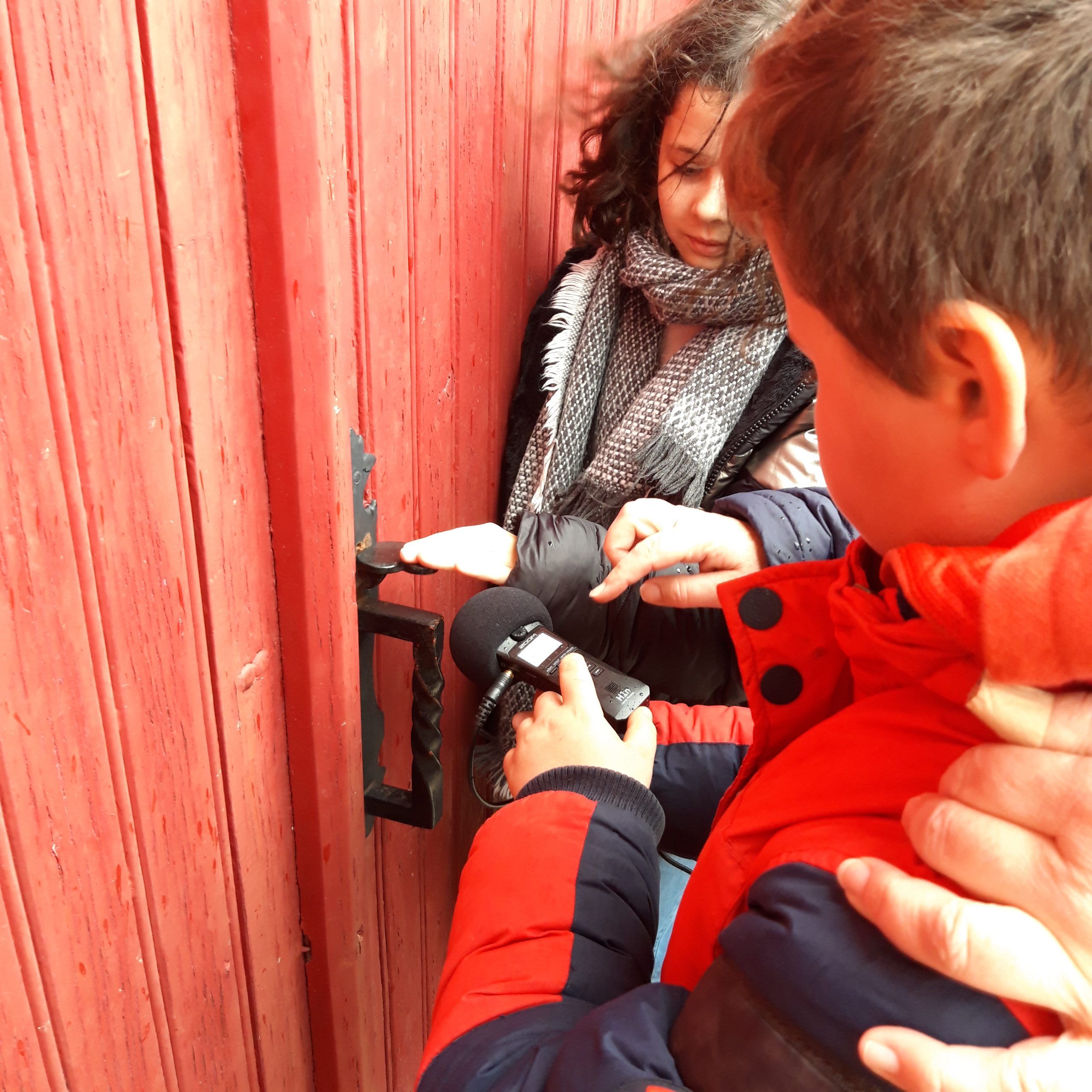 La seconde séance débute par un voyage en car, direction l’école d’une autre commune ou les enfants sont attendus pour un temps collectif. Puis à pied, les enfants des rendent sur les lieux choisis par les copain.ines de l’autre école! Une demie journée par lieux, la classe en demi groupe (afin que les enfants découvrent les 2 processus de création) passe de la vidéo au son (entrecoupé d’un moment très attendu… le pique nique!)