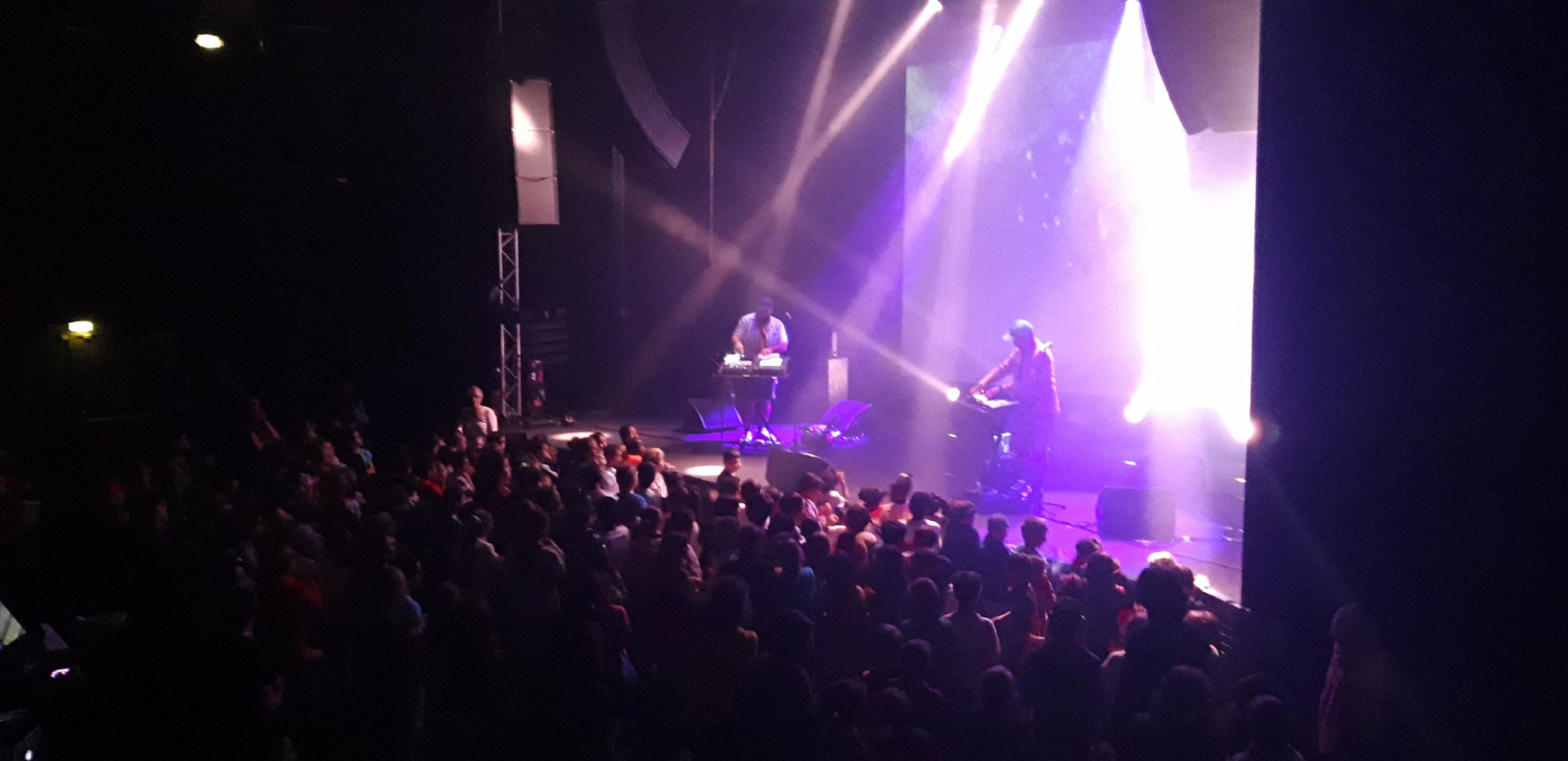 Puis à 14h, Sami et Axel ont donné un concert devant environ 200 élèves survoltés pour clôturer ce projet. Les écoles pouvaient inviter une autre classe et nous avions proposé à 3 classes d’une école nazairienne avec qui nous avions un projet cette année de se joindre à nous.