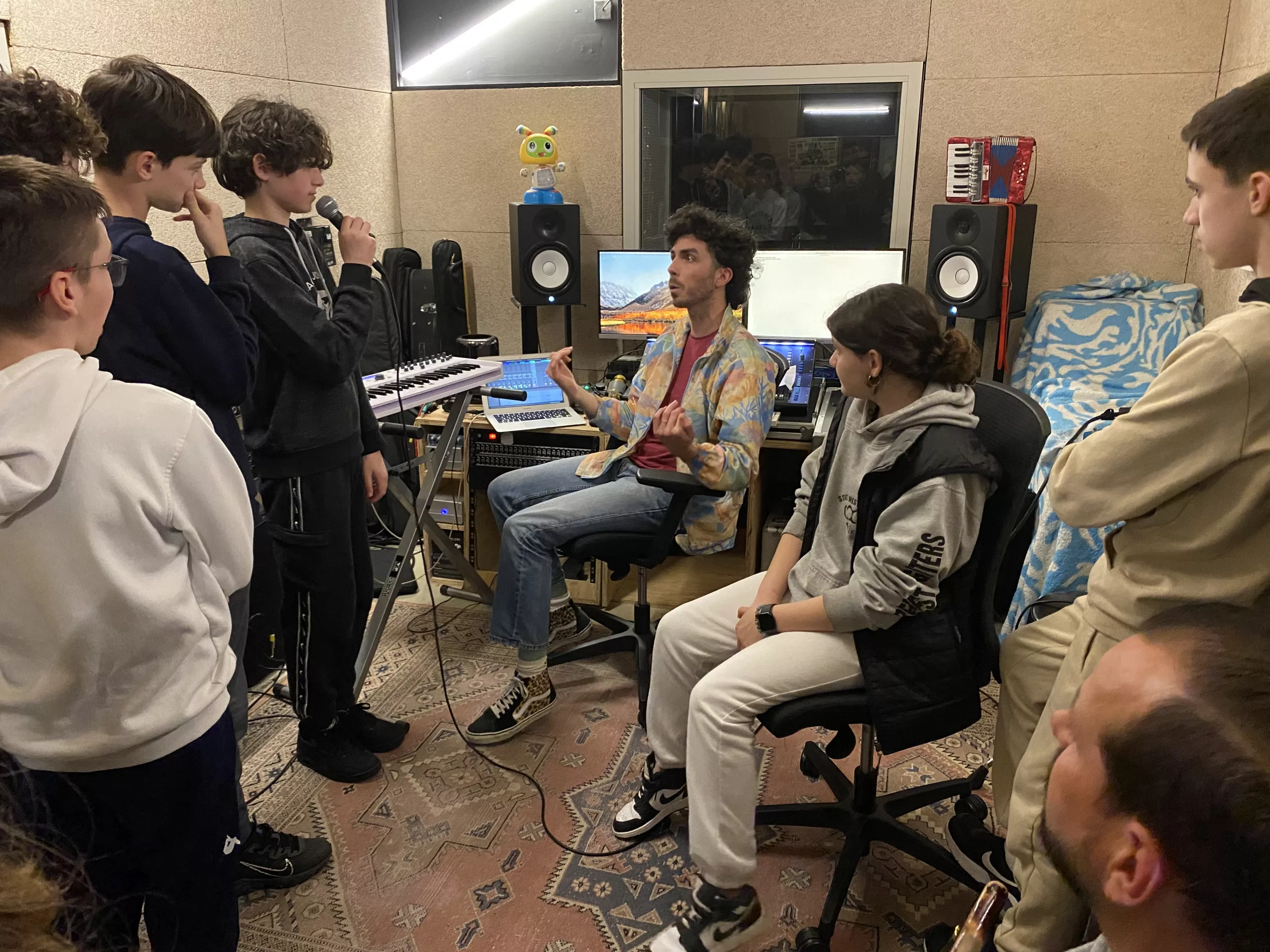 Aux studios, les élèves ont enregistré des textes étudiés en classe, des créations spontanées ou des morceaux d’artistes qu’ils apprécient avec Joris, (animateur des studios de répétition du VIP). Puis ce dernier les a fait découvrir les coulisses de la production en studio en ajoutant des effets et en mixant leurs productions.