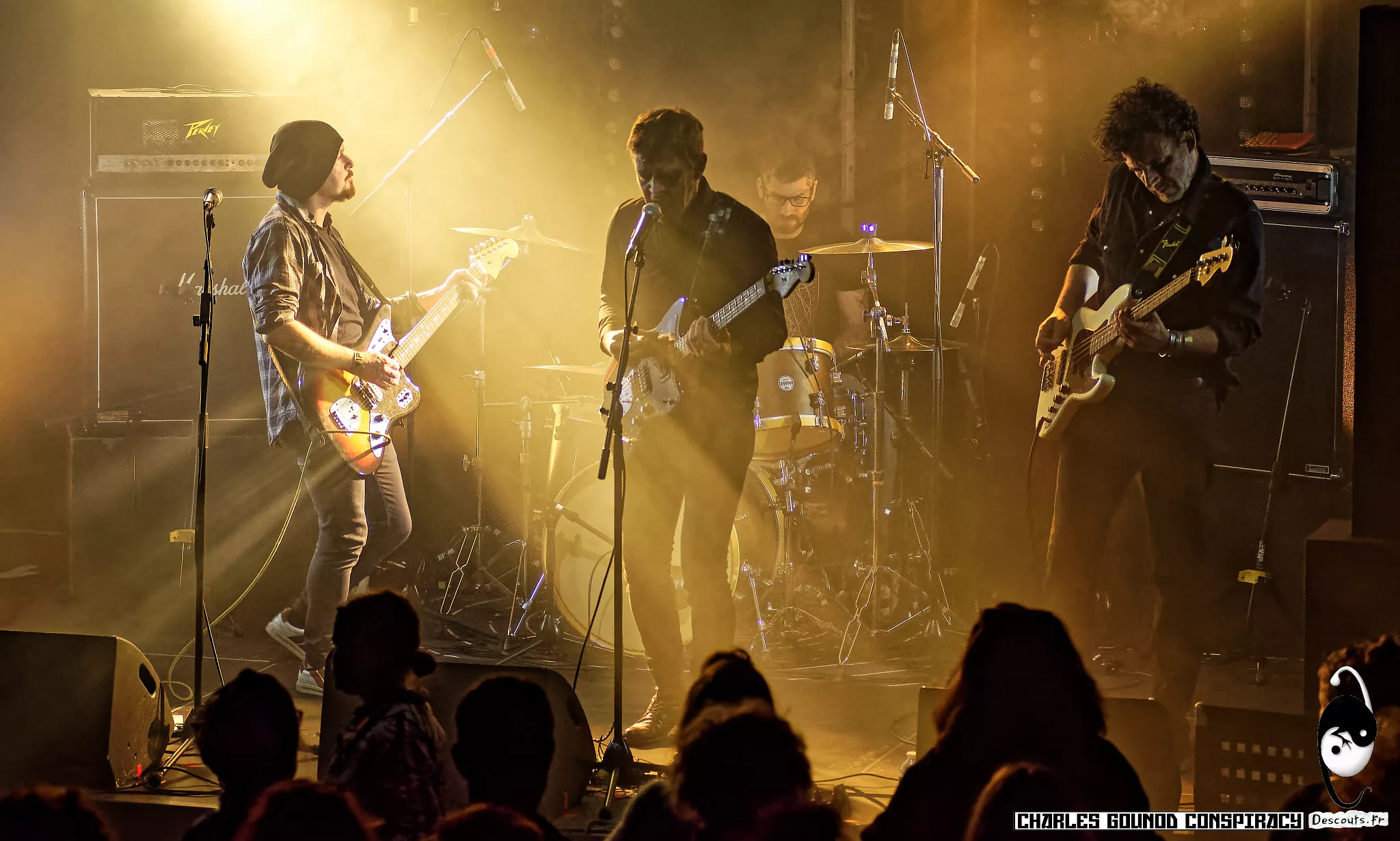 Le groupe de Saint-Nazaire est composé de 4 musiciens ; Grégory, au chant et à la guitare, Florian à la guitare également, Thomas à la basse et Alban à la batterie. Partir avec Charles Gounod Conspiracy c’est faire un détour, prendre la tangente d’un rock élégant et énervé. C’est tracer dans l’air des routes entremêlées, calmes et tendues à la fois.